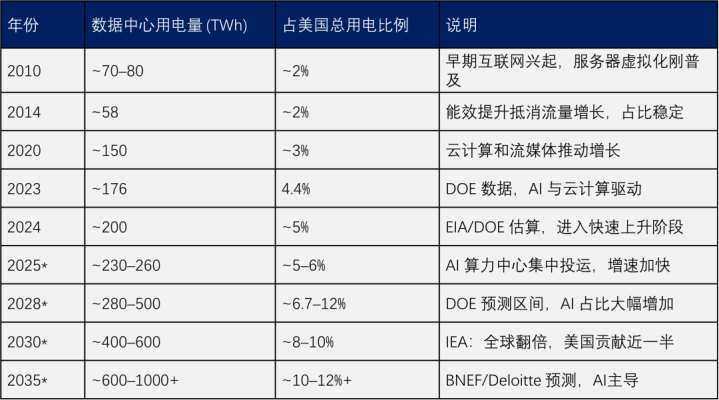 美国的AI究竟有多耗电?赶碳号根据多家机构统计和预测,做了一项统计。