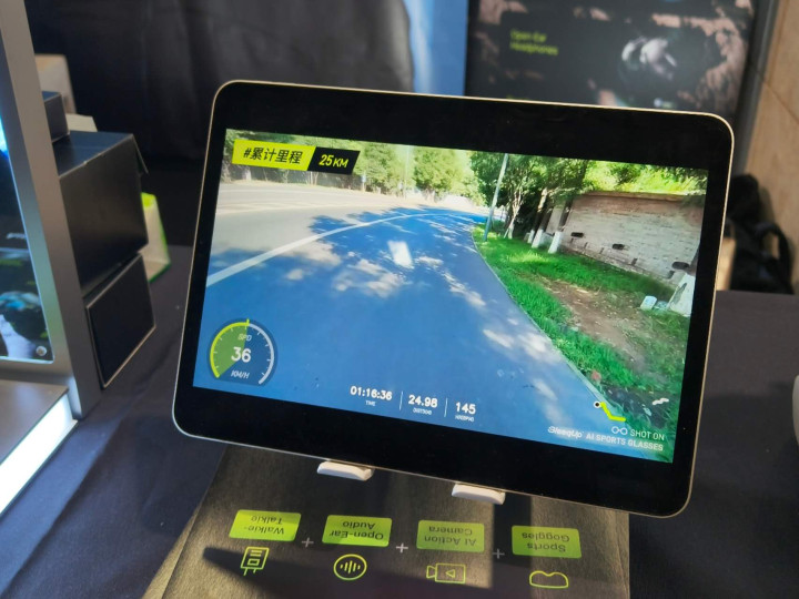 拍摄是这款智能眼镜的另一大亮点。BleeqUp 在产品中引入了 AI 算法,强化了画面稳定性。在展馆现场的演示中,即使佩戴者进行高强度「摇车」动作,视频依然保持平稳,防抖效果堪比使用专业稳定器。